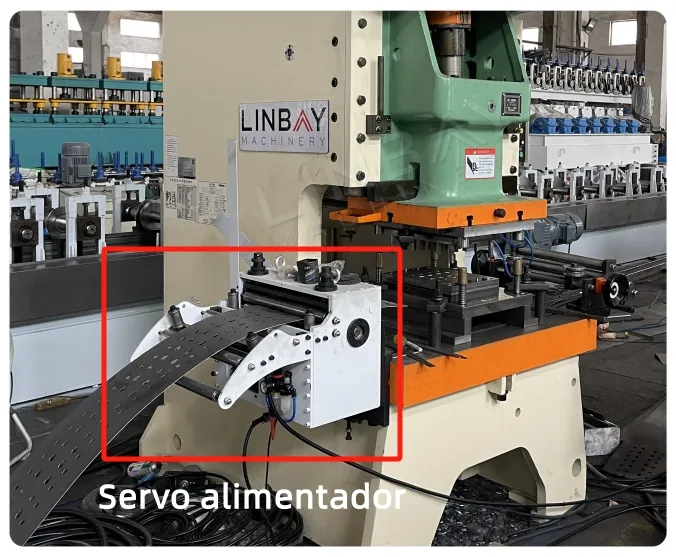 El sistema de alimentación servo admite control de pasos múltiples y permite programar las distancias y patrones de perforación según el diseño del perfil. Ofrece alta precisión y respuesta rápida.