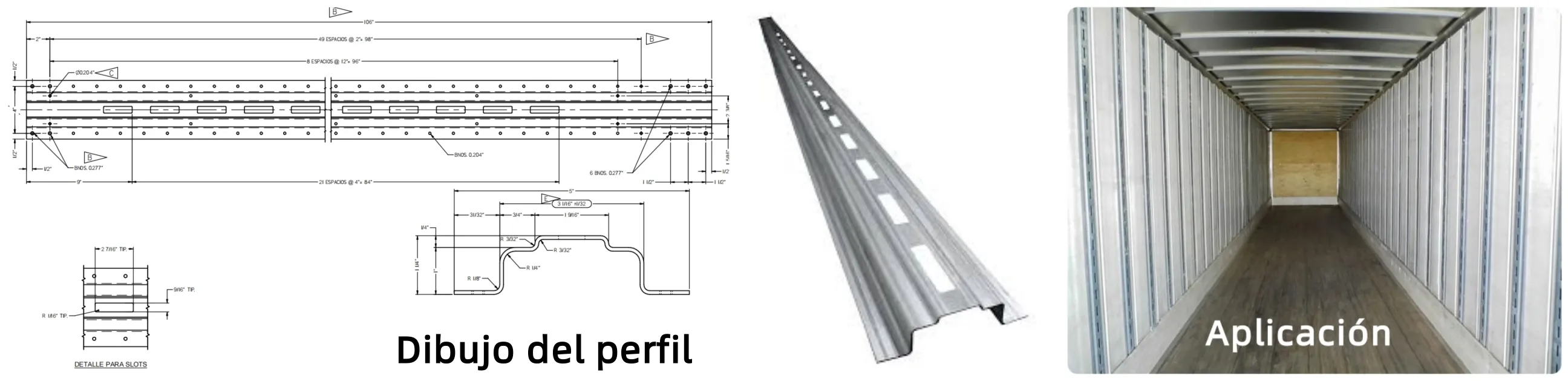 Esta línea de producción está especialmente diseñada para fabricar perfiles poste logístico (estaca logística), utilizados en el interior de carrocerías de camiones y remolques. Es ampliamente aplicada en la industria del transporte y la logística, especialmente en mercados como México, Estados Unidos y otras regiones de América. Estos perfiles se utilizan comúnmente en remolques secos, semirremolques y camiones refrigerados, desempeñando un papel clave en la división, refuerzo y fijación de carga.