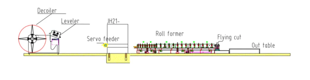 | Forma de trabajo: | Hidráulico | Antes de cortar, hay una enderezadora para asegurar la forma del perfil |